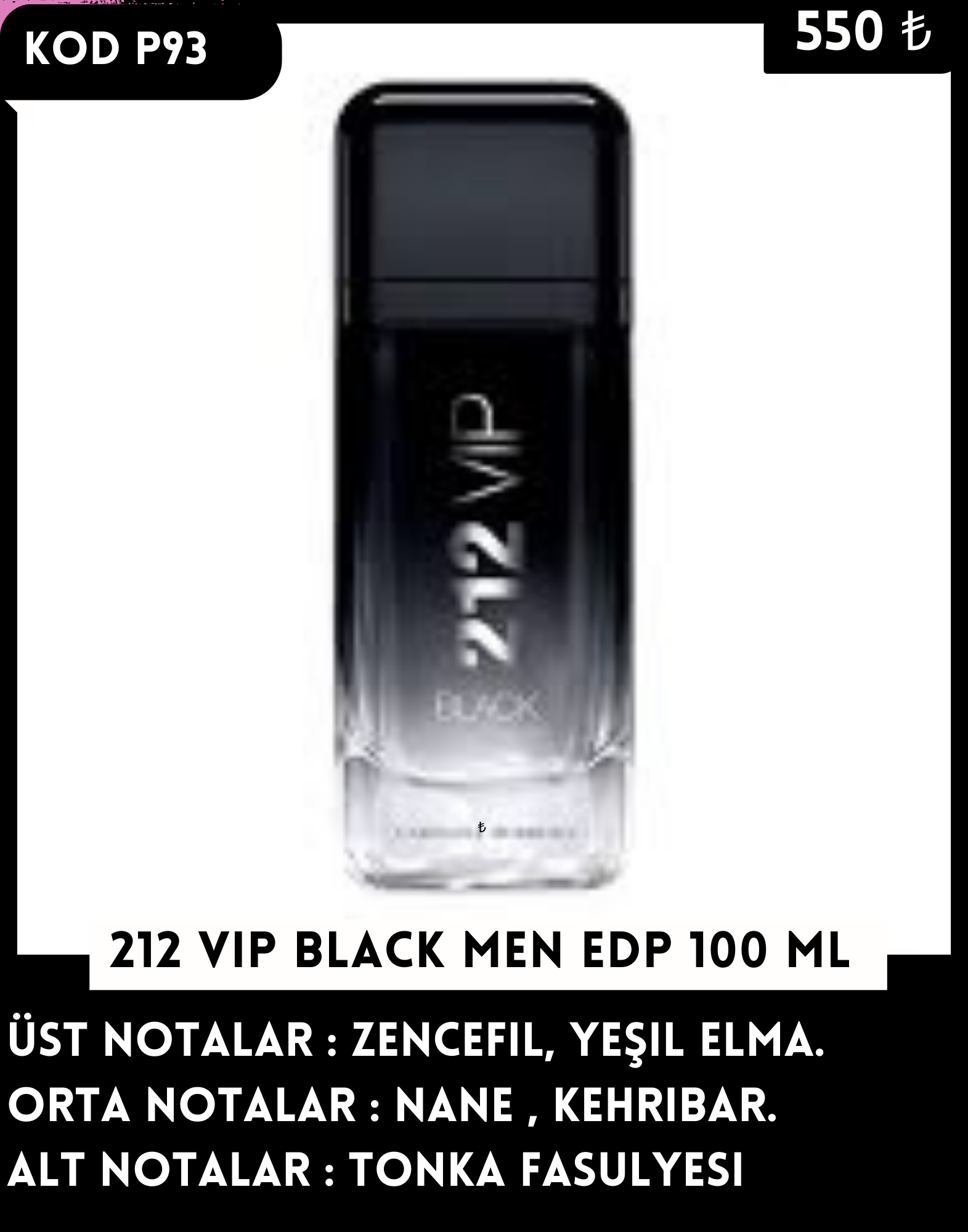 P93 212 VIP BLACK MEN EDP 100 ML - 550.00 TL