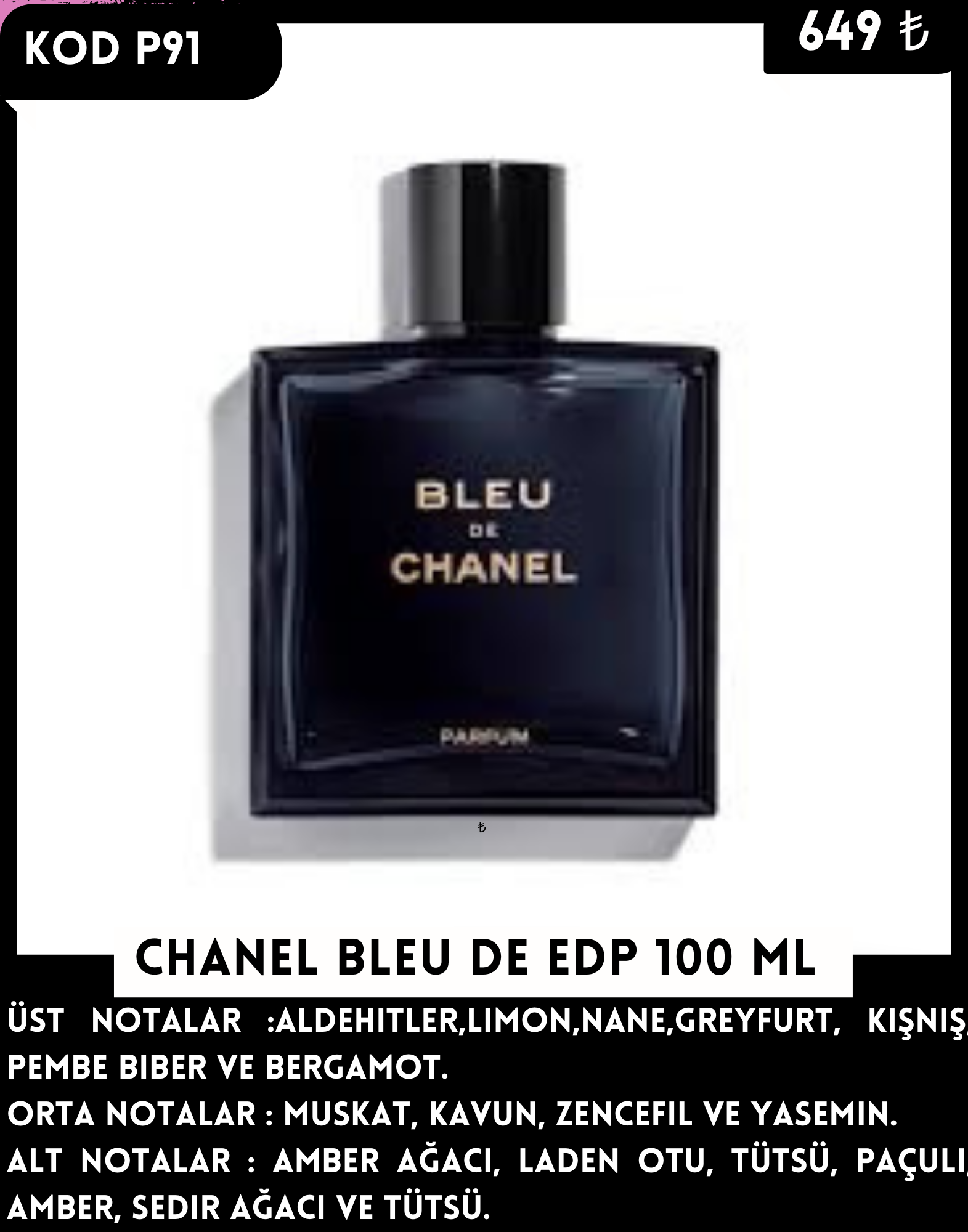 P91 CHANEL BLEU DE EDP 100 ML - 650.00 TL