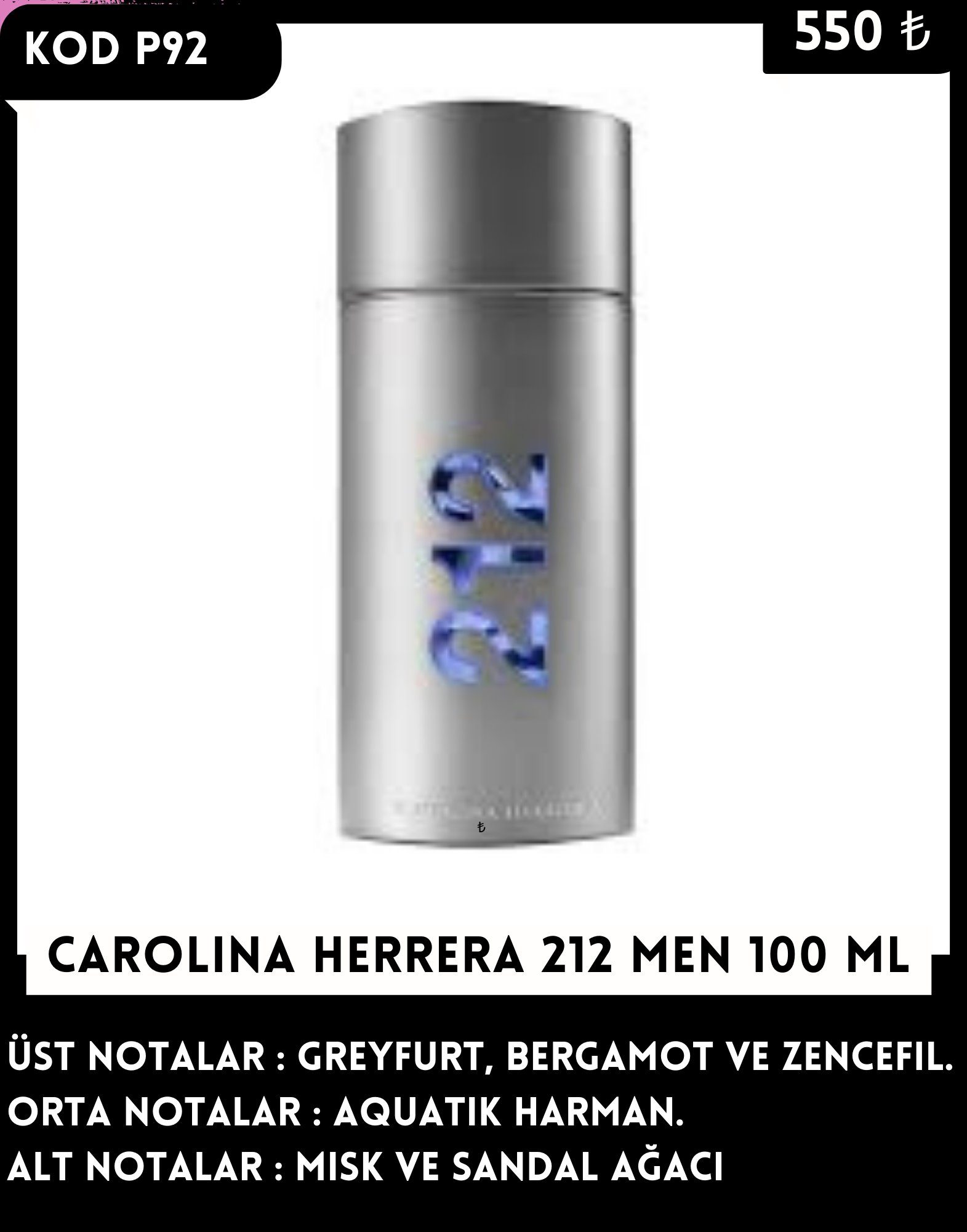 P92 CAROLINA HERRERA 212 MEN 100 ML - 550.00 TL